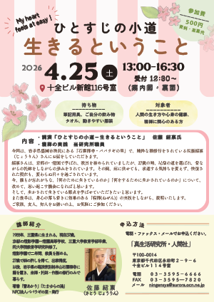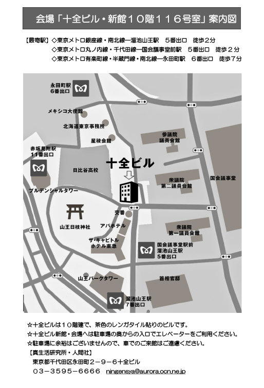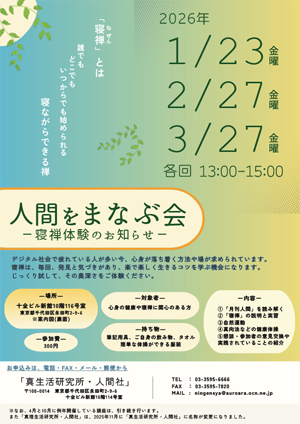 誰でも気軽に参加できますので、ご興味のある方は、「真生活研究所・人間社」に、電話またはファクス、郵便、メールでお問い合わせください。